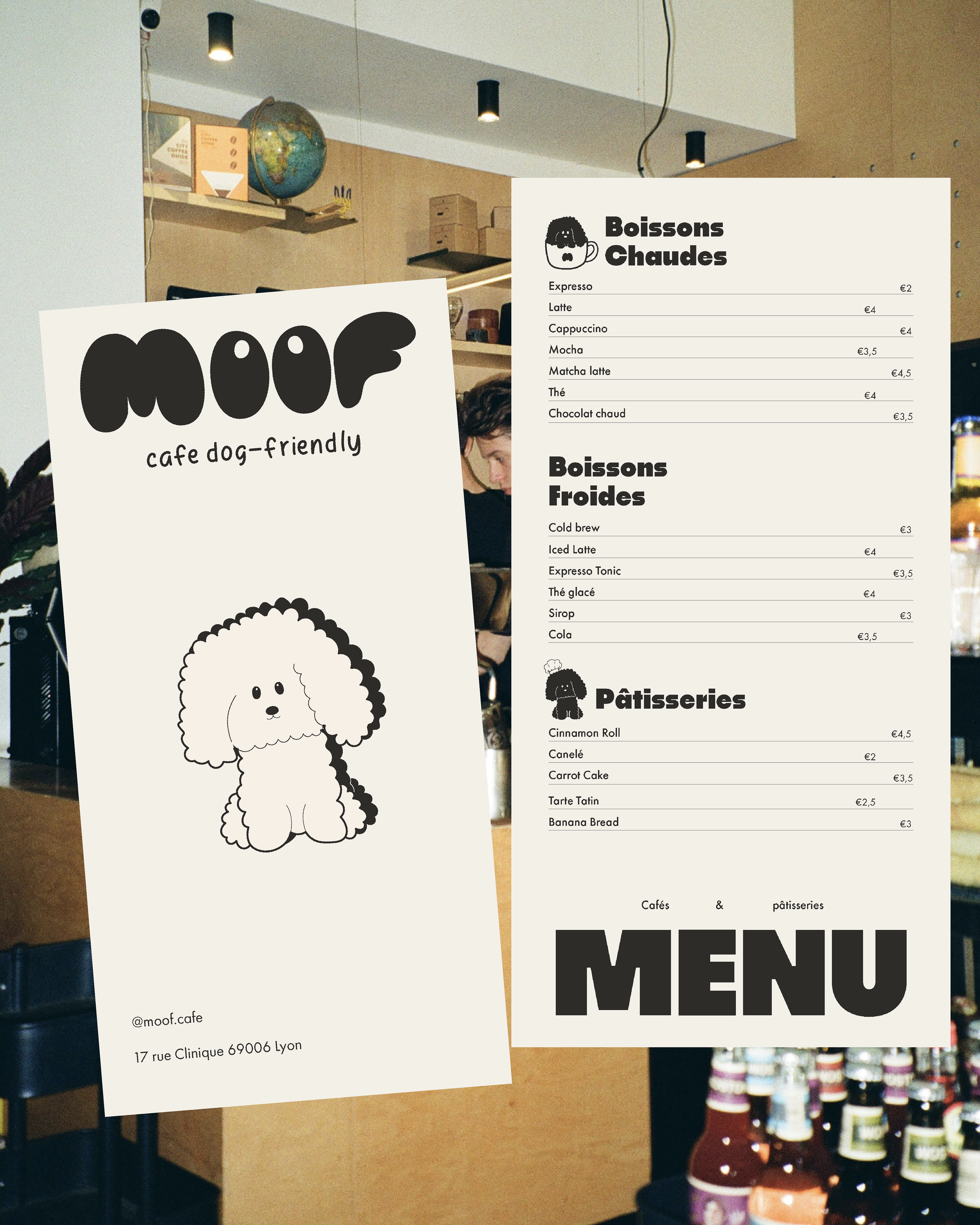 Vous l'aurez compris, MOOF, est un concept dog-friendly, safe place, un futur QG pour vous et votre chien. Pendant que l'un se fait toiletter, l'autre se repose avec une pâtisserie et une bonne boisson chaude